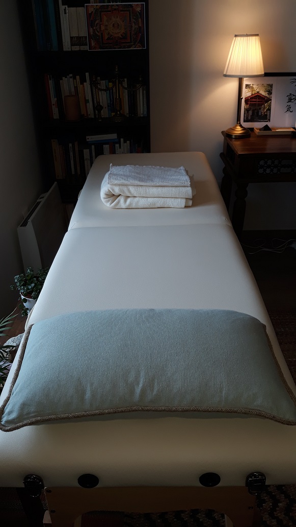 Une séance dure généralement entre 30 mn et 1h selon le type d’accompagnement et les besoins de la personne. Le Reiki se pratique très simplement : le receveur reste habillé et enlève ses chaussures pour plus de confort. Il se met en position allongée. Je pose mes mains sur différents endroits de son corps, de la tête aux pieds, sur l’avant et l’arrière du corps. Je transmets ainsi de l’énergie à l’ensemble de son corps.